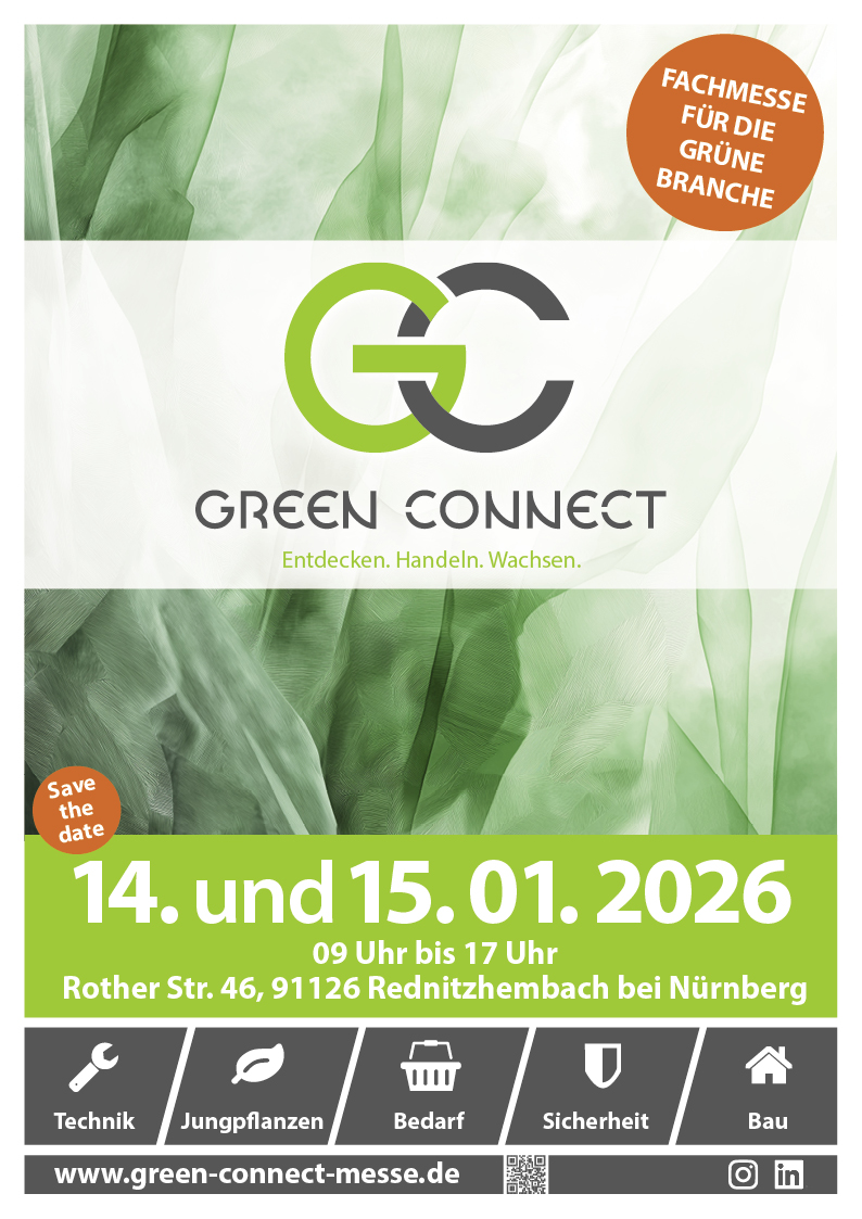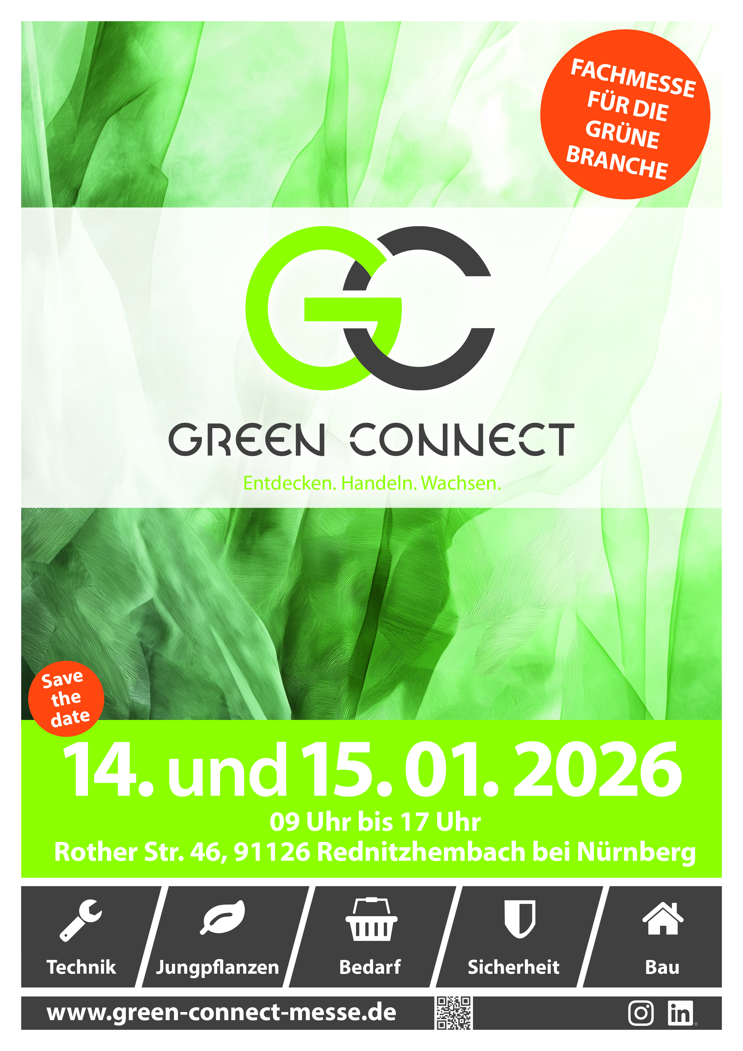 In unserem Pressebereich stellen wir Ihnen den offiziellen Flyer der GREEN CONNECT 2026 zum Download zur Verfügung. Nutzen Sie diesen für Ihre Berichterstattung und Werbematerialien. Die Flyer stehen in verschiedenen Formaten und Auflösungen bereit.